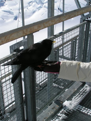 之後又再出去晃了一圈,發現有人在餵鳥,剛好我們中餐還有剩很多蛋糕,我們就把我們的中餐拿出來請客。Amanda 還故意讓鳥飛到手上吃,不過有些鳥很怕人類,硬是不肯飛上來,真好玩,在湖邊可以餵鴨子,在少女峰上居然還可以餵鳥!